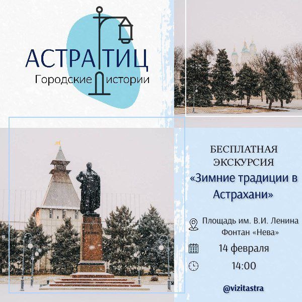 14 февраля в городе предлагают отметить необычно — признаться в любви не человеку, а родному краю. В рамках проекта «АстраТИЦ: Городские истории» пройдёт бесплатная прогулка «Зимние традиции в Астрахани».