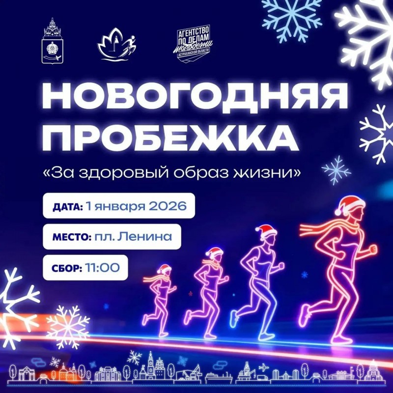 1 января 2026 года на главной площади Астрахани пройдёт традиционная новогодняя пробежка «За здоровый образ жизни».