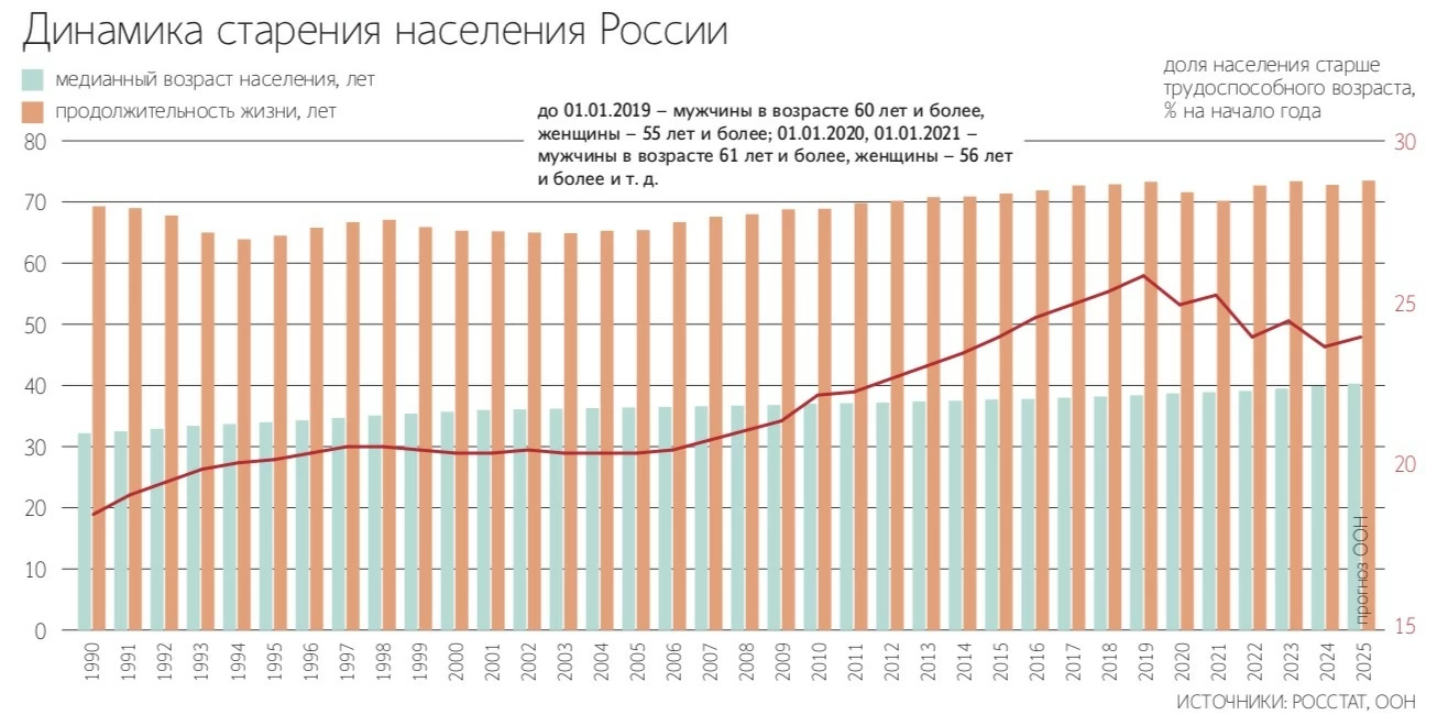 Главная причина сдвига — глобальное старение населения. По прогнозам ВОЗ, к 2050 году каждый шестой житель Земли будет старше 60 лет. На российском рынке труда это проявляется в росте среднего возраста работника, который в 2024 году достиг исторического максимума в 42,5 года. При этом на сцену активно выходят зумеры, которые в некоторых секторах, например в IT, составляют до 30% сотрудников.