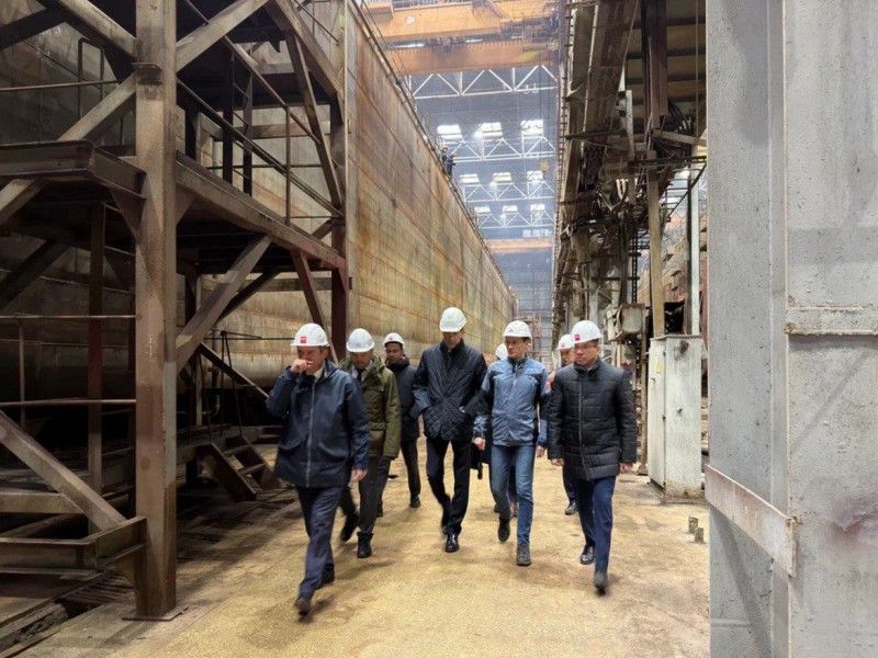 Делегация осмотрела заводские цеха и ознакомилась с ходом строительства серии из четырех контейнеровозов проекта 00108. Суда предназначены для эксплуатации на Каспии и смогут перевозить до 531 контейнера, включая 72 рефрижераторных.